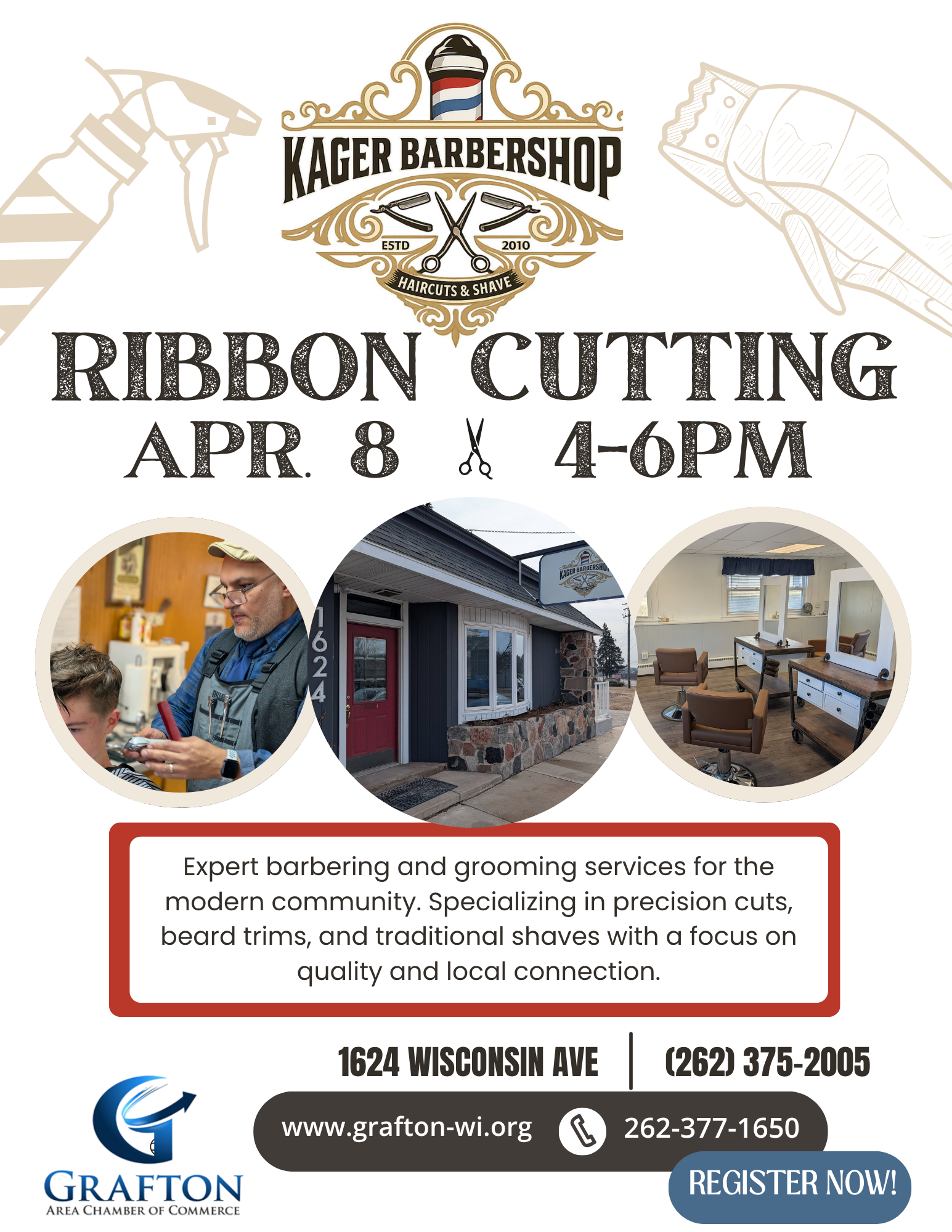 Join us at Kager Barbershop and explore Grafton’s new barbershop – expert barbering and grooming services.