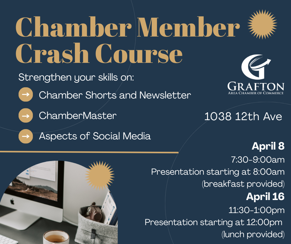 In these classes, you will learn how to utilize your resources and strengthen your skills on being a Chamber Member. There are limited spots available, so register today! Food will be provided.